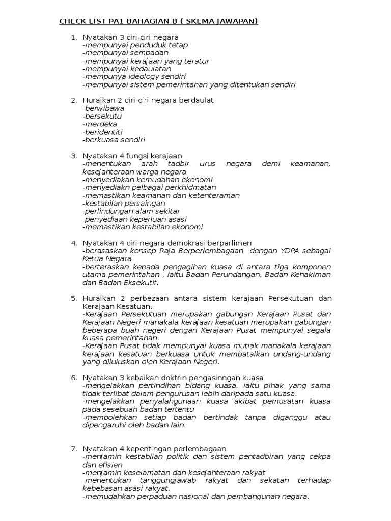 Checklist Soalan Dan Jawapan Pengajian Am Soalan Beserta Jawapan Checklist Pengajian Am Bahagian B