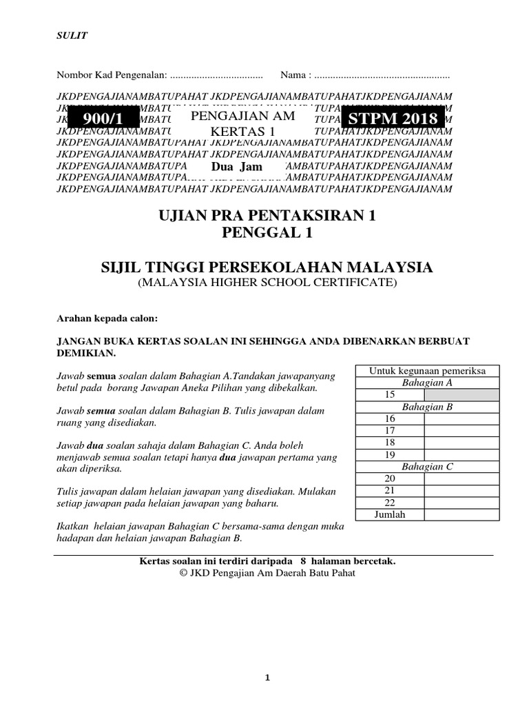 Soalan Percubaan Pengajian Am STPM Penggal Semester 1 Skema Jawapan. Calon yang mengambil peperiksaan STPM dikehendaki menyemak waktu peperiksaan sebenar bagi setiap kertas mengikut semester. Jawapan Soalan 16 2013 16.