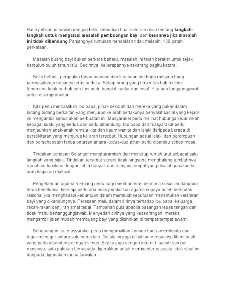 Contoh Karangan Kesimpulan Pembuangan Bayi
